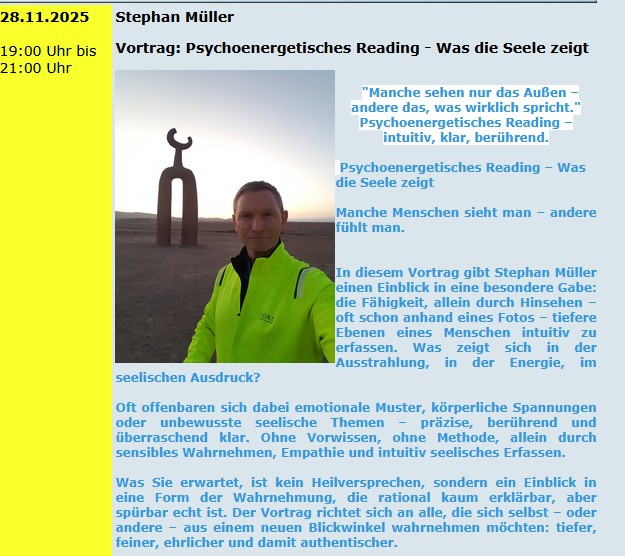 Vortrag: Psychoenergetisches Reading - Was die Seele zeigt