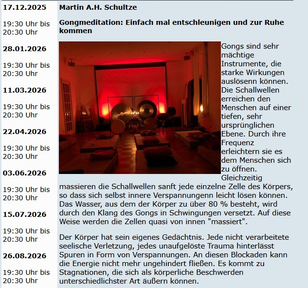 | 13.12.2025 18:00 Uhr bis 20:00 Uhr |