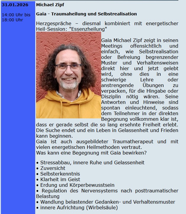| 29.01.2026 19:00 Uhr bis 20:30 Uhr Weitere Termine... |